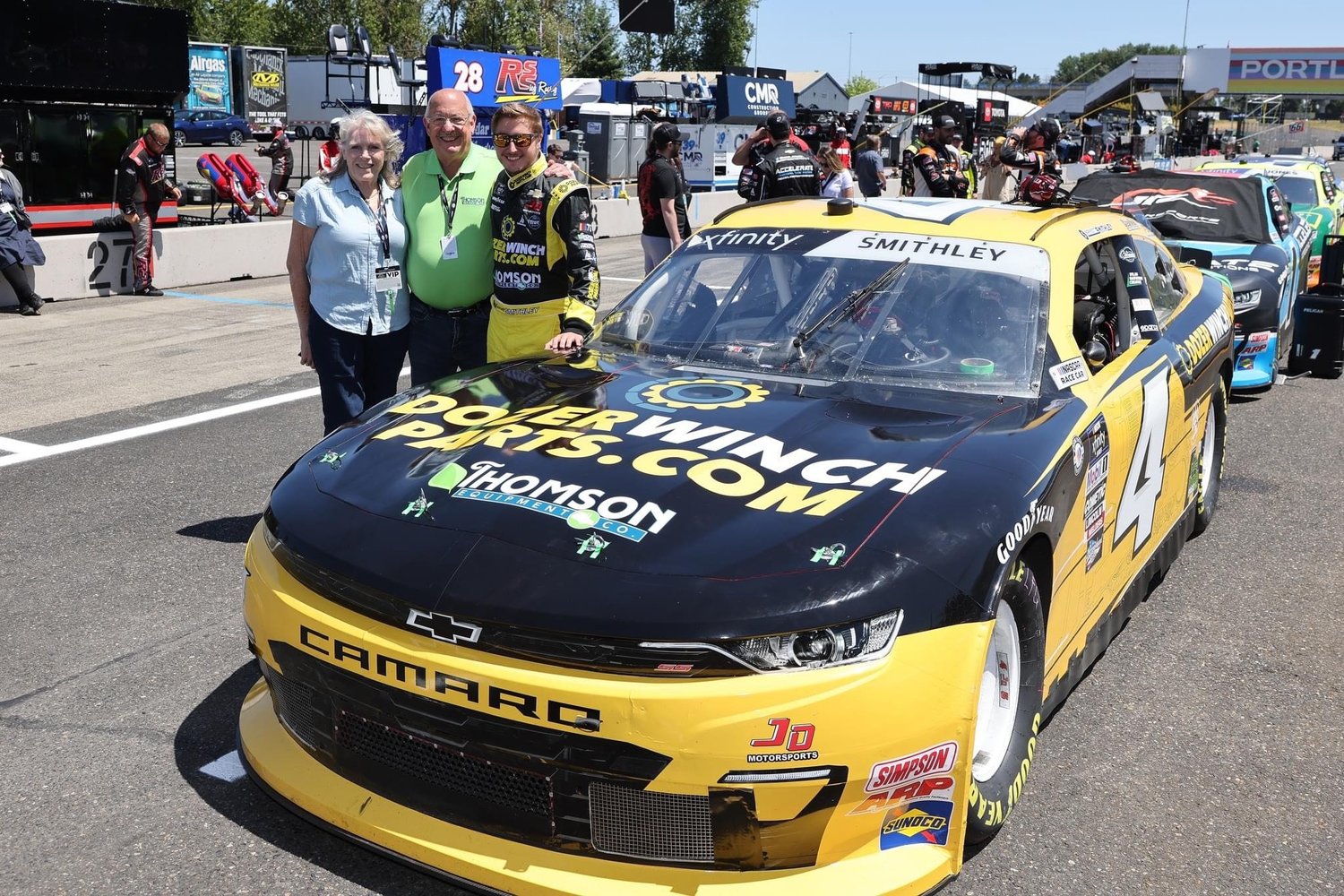"We're proud to partner with JD Motorsports and Garrett Smithley for the Pacific Office Automation 147," said a representative from Dozer Winch Parts and Thomson Equipment. "NASCAR is a great platform to showcase our brands and reach a passionate audience. We wish Garrett and the team the best of luck this weekend."