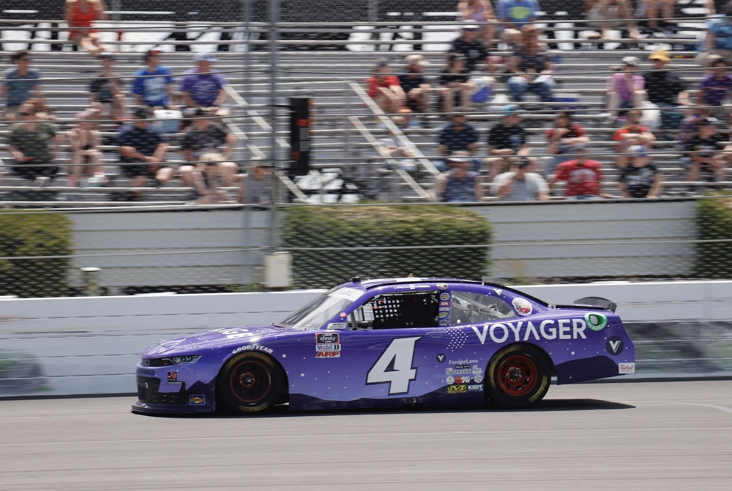 Landon Cassill, driver of the No. 4 Voyager Chevrolet, started the 90-lap race from the 23rd position. Cassill finished 24th in Stage 1, and moved all the way up to 14th in Stage 2 with the help of pit strategy. As the race came to a close, Cassill crossed the line with a 21st place finish – a nice rebound from a crash in last weekend’s event at Nashville.