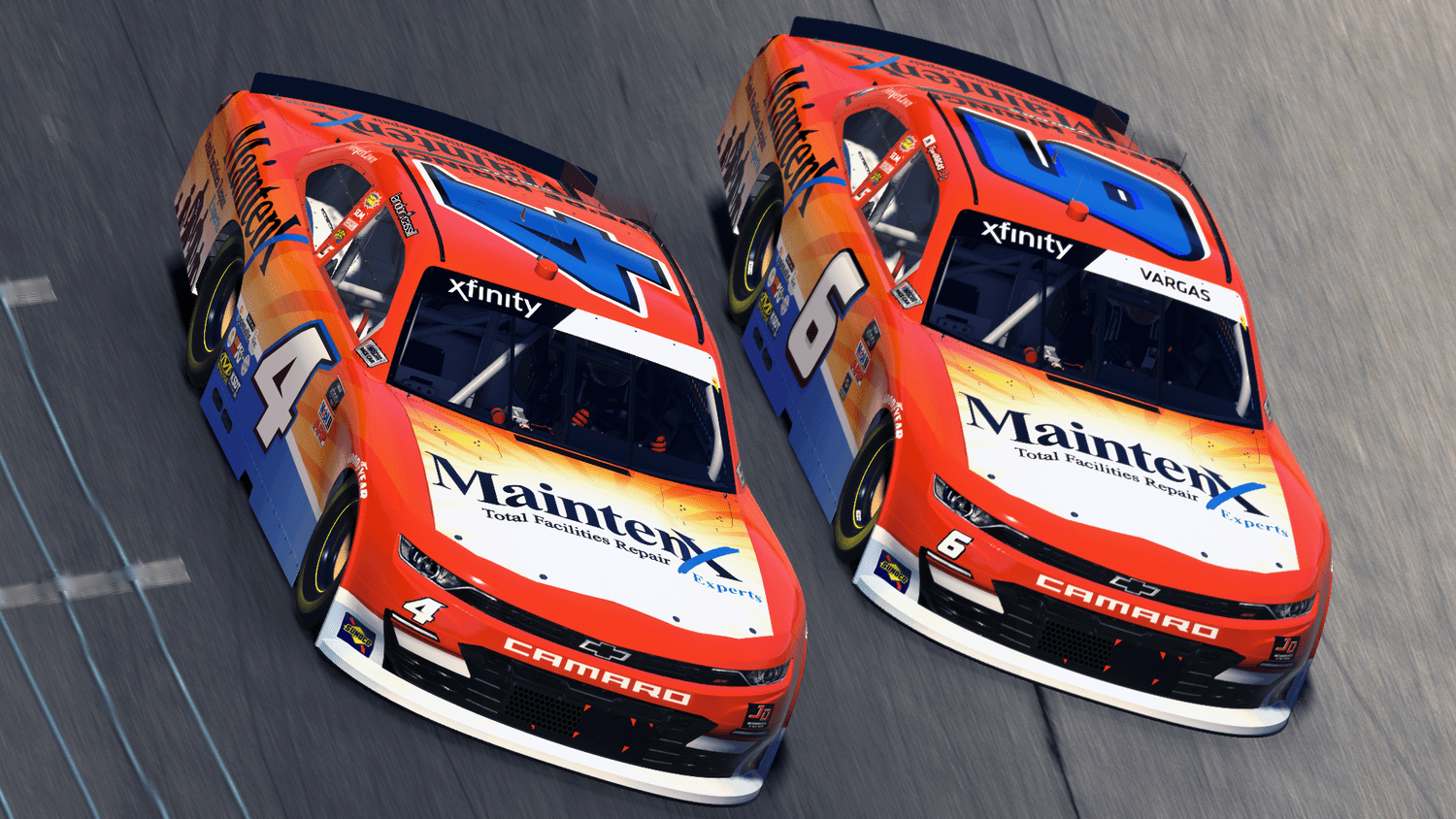 The bright orange and blue colors of the MaintenX brand will be proudly displayed on Landon Cassill’s No. 4 and Ryan Vargas’ No. 6 Chevrolet this Saturday for the first time, as the two drivers unveil their matching paint schemes during the Echo Park Automotive 250.