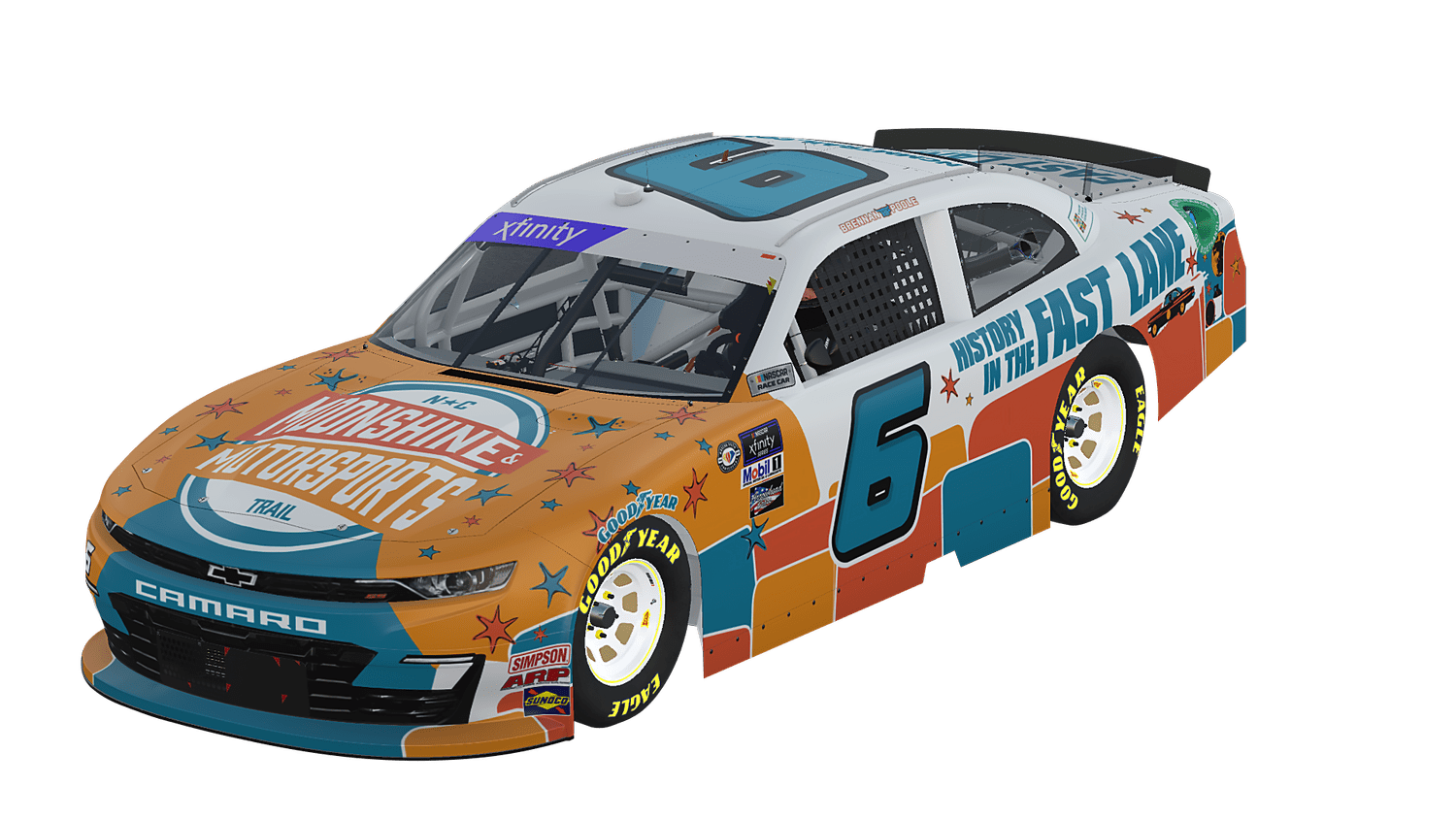 “I’m excited to be behind the wheel of the No. 6 Moonshine and Motorsports Trail Chevy,” said Poole, who recently celebrated his 100th start in the NASCAR Xfinity Series. “It is great to be able to represent an initiative that is focused on educating our community on the cultural and financial impact racing has had and continues to have on the state of North Carolina.”
