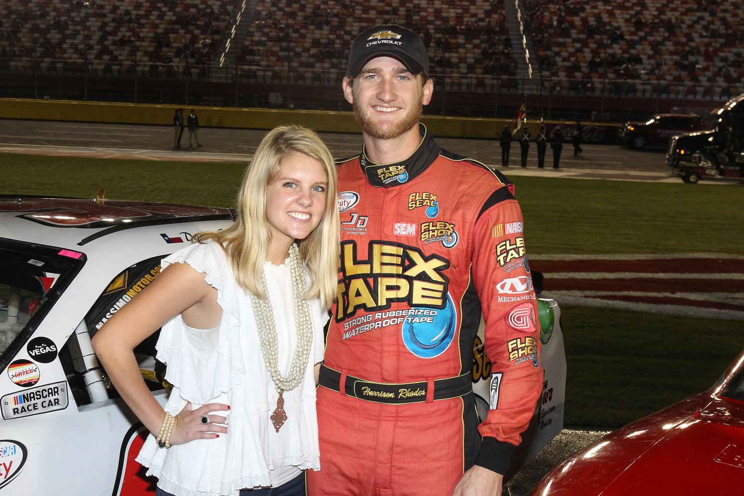With qualifying cancelled because of the persistent rain and mist, the field was set by the NASCAR Xfinity Series rule book, and Rhodes started in 30th. The race was scheduled to start at 3:00 p.m. (ET), but the weather pushed the start of the race past 8:30 p.m.