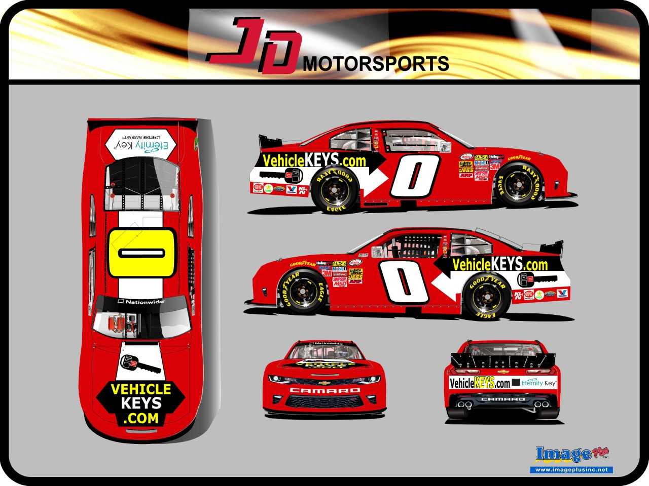 GAFFNEY, S.C. (April 10, 2018) – Fans can look forward to seeing the No. 0 VehicleKEYS.com Chevrolet Camaro on track a lot more during the 2018 NASCAR Xfinity Series season. After sponsoring Garrett Smithley and team JD Motorsports with Gary Keller during the Roseanne 300 at Auto Club Speedway, VehicleKEYS.com has decided to come on board for multiple races, starting with the Fitzgerald Glider Kits 300 at Bristol Motor Speedway on April 14th, 2018.